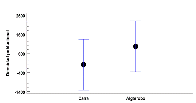 No existen diferencias estadísticamente significativas entre especies (Fig. 1) y entre los estados sucesionales de desarrollo (>0,05, Fig. 2).