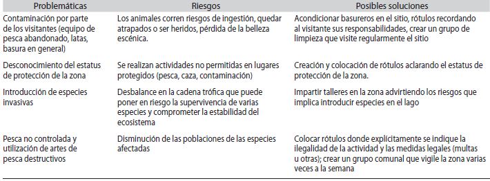 Los habitantes constataron la liberación de especies invasoras en este cuerpo de agua. Puntualmente se liberaron especies como el machín (Agonostomus montícola) y sábalo (Brycon guatemalensis), lo cual no se pudo corroborar en los muestreos. Esta situación podría llevar a un desbalance en la cadena trófica, poniendo en riesgo la supervivencia de varias especies (Pimentel, Zuñiga & Morrison, 2005). Se propone impartir talleres en la zona, advirtiendo los riesgos que implica introducir especies en la laguna (Benayas, Gutiérrez, & Hernández, 2003).