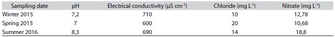Water quality: The physicochemical quality of water was evaluated by measurement of EC, pH, chloride and nitrate concentrations in the supply tank (Table 2). For the seasons studied, all values are lower than the recommended by the Argentinean Alimentary Code, which indicates: a maximum of 45mg*L-1 for nitrate, 350mg*L-1 for chloride, pH between 6,5 and 8,5, and there is no regulation for EC.