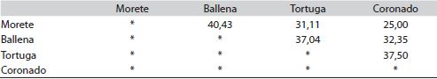 Abundancia relativa: El sitio con mayor registro de aves fue el río Morete (Higuerón) en el distrito Bahía Ballena con 65 individuos (IAR=3,71) (Kruskall-Wallis H=9,55; g.l.=5; p=0,0212*), seguido del río Coronado en Puerto Cortés con 39 (IAR=3,33), registros cercanos al total de la abundancia relativa para el área de estudio de 3,35 (Cuadro 2).