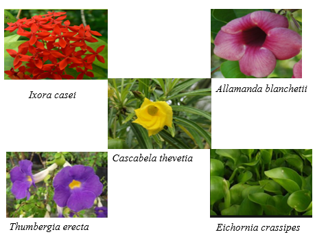 Identification of the flowery plants: The brightly colored petals and leaves of the flowers enabled easy identification when compared with documented flowers. The Fig. 1 shows the images of the flowers collected at IITA Benin’s garden and their corresponding names based on the physical characteristic of the leaves and petals.