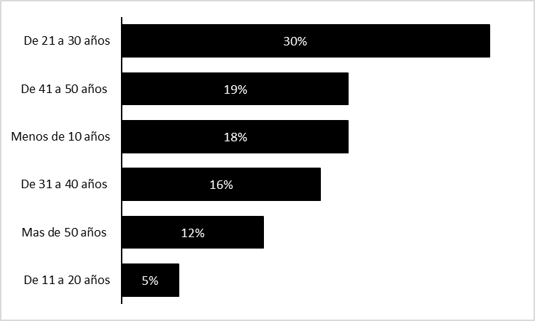 El 82% llevan más de diez años pescando (Fig. 4) por lo tanto se han enfrentado a la llegada del pez León en 2009 y han logrado seguir manteniendo su actividad económica pesquera al margen de la especie exótica invasora de la zona Caribe sur.