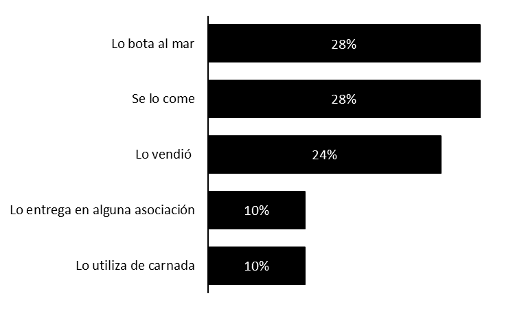 Por otra parte, las actividades realizadas por los pescadores muestran que el 72% de los encuestados le saco algún provecho (Fig. 7), inclusive las asociaciones utilizaron las espinas para hacer joyería.