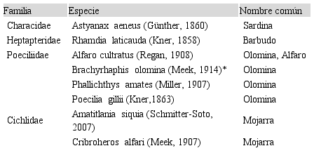 Las otras dos especies pertenecen a la familia Cichlidae. La mojarra rayada o convicto Amatitlania siquia (Fig. 2), estaba reportada para la cuenca del Río Tárcoles, pero solamente para altitudes entre 0 y 540msnm (Bussing, 2002; Angulo et al., 2013), mientras que en el presente estudio se encontró por encima de los 1 000msnm, por lo que se considera importante contribuir al conocimiento de su distribución actual.