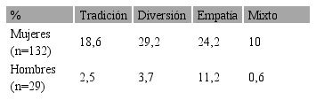La razón por la que alimentan a las palomas es independiente de la edad (Chi cuadrado de bondad de ajuste x2=8,1; gl=6; p=0,2309), del nivel de escolaridad (Chi cuadrado de bondad de ajuste: x2=1,55; gl=6; p=0,9561) y del objetivo de la visita al parque (Chi cuadrado de bondad de ajuste: x2=12,5, gl=6; p=0,0517). Únicamente encontramos que el sexo de las personas afecta la razón por la cual alimentan a las palomas (Cuadro 3). Las mujeres alimentan a las palomas en igual proporción por tradición, diversión y empatía. Por el contrario, los hombres las alimentan principalmente por empatía.