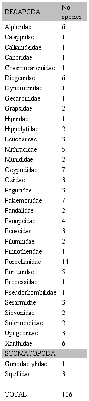 Keywords: Biodiversity, eastern Tropical Pacific, Stomatopoda, Dendrobranchiata, Caridea, Anomura, Brachyura.