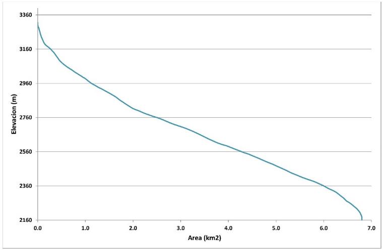 La curva hipsométrica y el gráfico de frecuencia altimétrica fueron construidos usando las áreas entre contornos determinadas en ArcGis y las elevaciones. El valor de la integral fue obtenido del método de Pike y Wilson (1971).