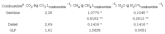 Se aplicó los factores de emisiones de diésel sin un catalizador. En este caso, la ecuación (3) se reduce a la ecuación (4):