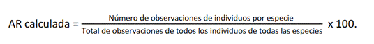 Realizamos la caracterización con base en la determinación de la Riqueza y la Abundancia relativa calculada la cual se expresa en la siguiente fórmula: