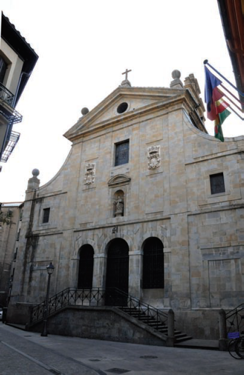 El convento de carmelitas descalzos de Santa Ana de Pamplona se erigió dentro de los muros de la ciudad bien entrado el siglo XVII, después de haber vivido los religiosos desde 1587 extramuros en el barrio de la Magdalena, merced a la iniciativa del noble navarro Martín Cruzat33. Un traslado que facilitó la labor apostólica de los frailes, aunque surgieron inconvenientes a la hora de edificar el convento, especialmente ante la escasez de suelo urbano y la oposición de otras comunidades religiosas instaladas previamente en la ciudad, principalmente de la parroquia de San Lorenzo en cuyo ámbito jurisdiccional se emplazaron. Una vez obtenida la oportuna licencia de manos del padre general, fray Juan del Espíritu Santo, el 20 de mayo de 1637, se solicitó la presencia del tracista fray Nicolás de la Purificación, quien se desplazó desde el convento carmelitano de Calahorra en el que residía, emitiendo un informe favorable sobre el lugar elegido para la construcción del nuevo convento al final de la calle de Carnicerías Viejas, en el burgo de San Cernin, cuyas trazas le fueron encargadas. Proyecto en el que también participó de alguna manera el tracista fray Alonso de San José, con motivo en 1639 de su nombramiento como prior del complejo pamplonés34.