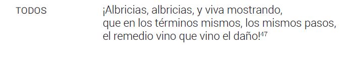 El ojo, como símbolo universal, se asocia con la percepción intelectual, mientras que el ojo en el cuerpo alegoriza la recepción de la luz44. El simbolismo de la omnisciencia divina se capta en la figura del primer ángel con siete ojos: dos en cada mano y tres en su centro. Esta alegoría implícita reside en el linealismo escénico de la pintura mural románica en Dos ángeles. Los siete ojos de marcado simbolismo antropomórfico podrían referirse aquí al Cordero del arte cristiano medieval mayormente representado en mosaico, el Agnus Dei, del Apocalipsis alegorizando así los Siete Espíritus de Dios enviados a la tierra45. Esta imagen pictórica en el mural de la ermita representa la perfección de Dios en ciencia, misericordia y gracia que se transmite mediante la victoria de la resurrección. El número siete, símbolo teológico de la perfección, se utiliza para demostrar la trascendencia divina con que se finaliza La inmunidad del Sagrado mediante las «bienaventuranzas» calderonianas en la voz del personaje del Hombre al fin del auto cuando éste ha sido restituido a su paraíso (jardín) por el poder mediador de la gracia. Los siete personajes pronuncian estas bienaventuranzas alcanzando la redención bíblica mediante el Corpus Christi y la justicia poética a través del género del teatro46. Calderón transmite el sentido de lo intangible del misterio bíblico hacia un plano tangible de realidad comprensible en el auto sacramental de La inmunidad del sagrado. Se presenta la condición humana de la caída del primer Adán, pero no sin mostrar la solución vigente otorgada por el segundo Adán (el Cordero de Cristo) en el dramatismo de la cruz del Calvario. Al final del auto sacramental los personajes gritan al unísono:
