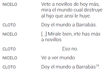 El tercer pródigo del auto es un caso peculiar. Se trata de Cloto, hijo de Nicelo, el porquerizo que acoge a Pródigo tras haber sido despojado de su dinero, asaltado por ladrones y caído en la más absoluta miseria. Nicelo es el contrario al padre de Pródigo, pues quiere que su hijo marche de casa y vea el mundo para que se pueda crear su propia visión del mismo. No obstante, si bien Cloto es reticente a ello pues se encuentra en la comodidad del hogar, después de que el protagonista cuente las desgracias de su viaje, rehúsa marcharse definitivamente y decide quedarse cuidando los cerdos: