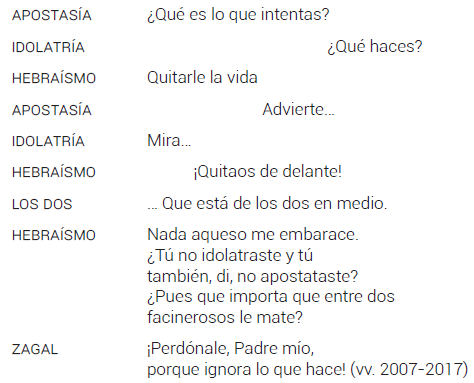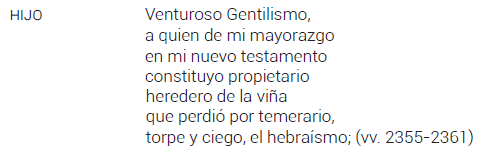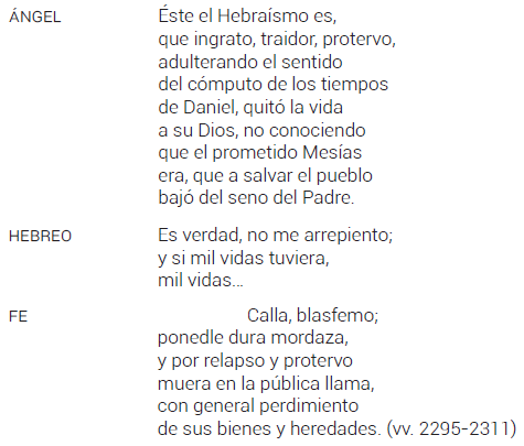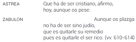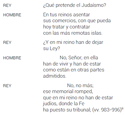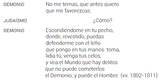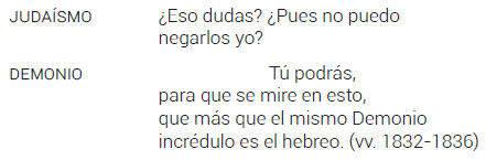 En este mismo auto encontramos nuevos versos en los que se manifiesta el tratamiento peyorativo que Calderón hace del Judaísmo: