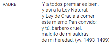 Vemos, en estos versos, que toma pie de las palabras de Cristo en la Cruz, evocando la muerte de Jesús entre los dos ladrones. Sin embargo, poco más adelante, nos encontramos unos versos en los que parece que Calderón juzga de forma negativa el hebraísmo, justificando el destierro del pueblo judío: