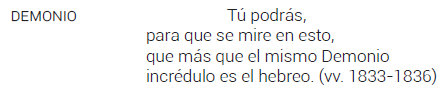 También en El diablo mudo, donde —a título de ilustración— leemos los versos pronunciados por el Demonio, pero referidos al personaje Judaísmo, a quien descalifica: