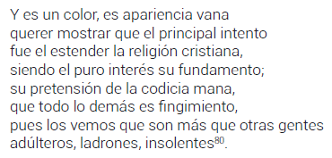 Así, los bárbaros en La Araucana fueron convencionalmente aquellos que no profesaban la fe cristiana, pero ideológicamente fueron quienes no la practicaban. Más allá de la definición convencional dada por el desconocimiento de Dios, lo que se asociaba a la barbarie era la conducta no cristiana, lo que permitía proyectar la crítica al proceder de los conquistadores, como lo habían hecho también, desde una tribuna diferente, Las Casas, Vitoria o Gil González. Ninguno se había declarado contrario a la legitimidad del imperio español —pese a que se les acusó de esto—, pero sí habían criticado los procedimientos aplicados para su consecución79.