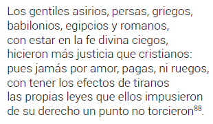 Diego Arias, al iniciar el canto XV de Purén Indómito, comparaba la condición de los pueblos antiguos con aquellos que combatían en Arauco, y evitaba referirse a los primeros como bárbaros, aun siendo paganos. El poeta, en cambio, hablaba de los gentiles, apoyando la tesis —que ya había sugerido Vitoria87—, según la cual la virtud y la justicia no se derivan necesariamente de la fe cristiana, como tampoco se deriva la barbarie de la infidelidad: