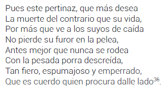 Sin embargo, esto no se debía a un cuestionamiento de la causa española a se, sino más bien al modo de proceder de algunos conquistadores y a la desilusión de Ercilla ante la incoherencia dada entre una y otros: desde el aprovechamiento de los españoles de la superioridad de sus fuerzas frente a la ingenuidad araucana, criticada en el Canto I, hasta las reflexiones que la muerte de Caupolicán provocó en el poeta74. Este pasaje plantea, precisamente, la plasticidad e historicidad del concepto de barbarie, cuya aplicación se definía a partir del testimonio del autor frente a la historia.