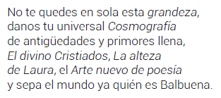 Giménez Pérez, Felipe, «Panegírico al Imperio. A propósito de una edición negrolegendaria de Bernardo de Balbuena, Grandeza mexicana, perpetrada desde Madrid por Ediciones Cátedra», Catoblepas, 139, 2013, p. 3.