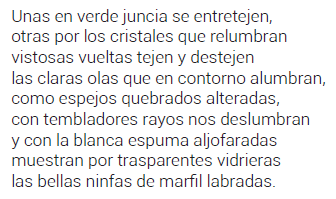La nota 237 explica, refiriéndose al final de tercer verso citado, que «La princeps, en efecto, no cierra con punto, sino que encabalga con el terceto que sigue. No obstante Van Horne, Monterde, González Boixo y Domínguez ponen punto final y empiezan de nuevo en la siguiente estrofa, lo cual le da otro sentido». Cabe señalar que la princeps, contra lo que dice Saad, sí pone punto al final del terceto, porque siempre pone punto al final de los tercetos, como marca de pausa versal y estrófica, que no como puntuación relativa a la sintaxis. De manera que en lo que se refiere a la sintaxis sería irrelevante que la príncipe pusiera o no punto final. Segunda observación: la puntuación de los editores anteriores es la correcta y la de Saad mala. Porque la editora interpreta erradamente «las claras olas» como objeto directo de «tejen y destejen». El objeto directo de «tejen y destejen» es «vistosas vueltas»; las claras olas son sujeto de la siguiente oración cuyos verbos principales son «deslumbran» y «muestran». Hay que poner, en efecto, un punto donde los editores precedentes lo ponen.