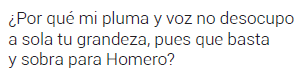 hay algo más profundamente escondido […] Este debate, sea lingüístico, antropológico o filosófico [sic] no ha terminado; es mucho lo que permanece aparentemente «cifrado» […] ¿Qué es lo que en realidad está cifrado o escondido? ¿A quién o quiénes se le esconde qué? ¿La verdad? ¿Cuál? Son muchas las posibles preguntas y respuestas y todas dependen de los ojos que lean esta obra […] el lenguaje altamente erudito, preciosista y oscuro del poeta se presta a un sinfín de interpretaciones […] lo cierto es que su obra esconde o al menos obvia la brutal realidad de su presente (pp. 31, 32, 234, nota 265)
