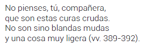Tras concluir la depilación del rostro, Pascuala debe mudar la piel de Menga, es decir, le aplicará mudas o maquillaje en la cara, como le anunció al inicio (vv. 381- 382). Pero Menga, desconocedora absoluta de estos cuidados, imagina que va a sentir dolor (vv. 385-388). Sin embargo, su compañera le explica que: