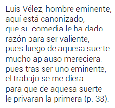 la poesía de La comedia segunda de Los agravios perdonados y, efectivamente, de todas las obras dramáticas de Gaspar Aguilar, relativiza algunos principios aceptados por la crítica actual, porque la voz y el medio métrico de su autor no se ajustan sino en parte a los cánones del Arte Nuevo (p. 24).