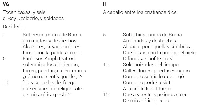 Revisando piezas de teatro del Siglo de Oro español, encontramos que don Luis Vélez de Guevara tenía una obra que se titulaba El cerco de Roma por el rey Desiderio. Fuimos a la Biblioteca Nacional François Mitterrand (París), y encontramos la versión del texto editada en Madrid, en la calle de la Paz, en 1783. Al compararla con el texto recibido nos pareció ser la más parecida al texto de Luis Cajavilca. La obra suelta de Luis Vélez de Guevara se llama El cerco de Roma por el rey Desiderio5.
