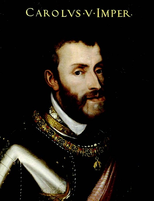La storia del ritratto posseduto da Paolo Giovio e copiato da Cristofano dell’Altissimo ci parla di altri personaggi, di altre relazioni, di altri intrecci politici e culturali: sarebbe stato infatti di mano di Tiziano e realizzato in occasione di uno dei due incontri avvenuti a Bologna tra Carlo V e il papa Clemente VII, anch’egli un Medici, nel 1530 e nel 1532: troviamo presenti diplomatici di varie nazionalità, pittori, ambasciatori. C’è Paolo Giovio stesso, che vede in Carlo V il baluardo della cristianità contro l’avanzata dell’impero ottomano di Solimano il Magnifico ed è venuto a offrirgli uno studio sul nemico da conoscere per combattere, il Commentario delle cose dei Turchi.