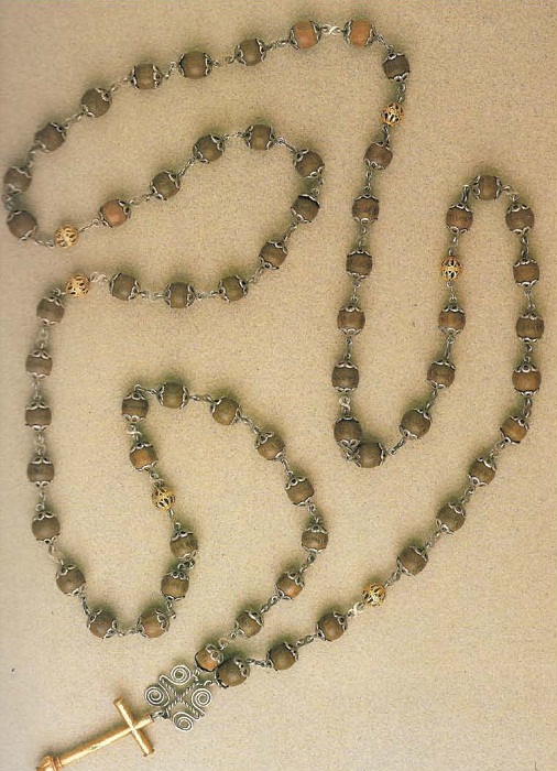 1. Rosário de contas de calamba e prata com cruz em ouro, séc. XVII, Índia, Bens Conventuais, Portugal.