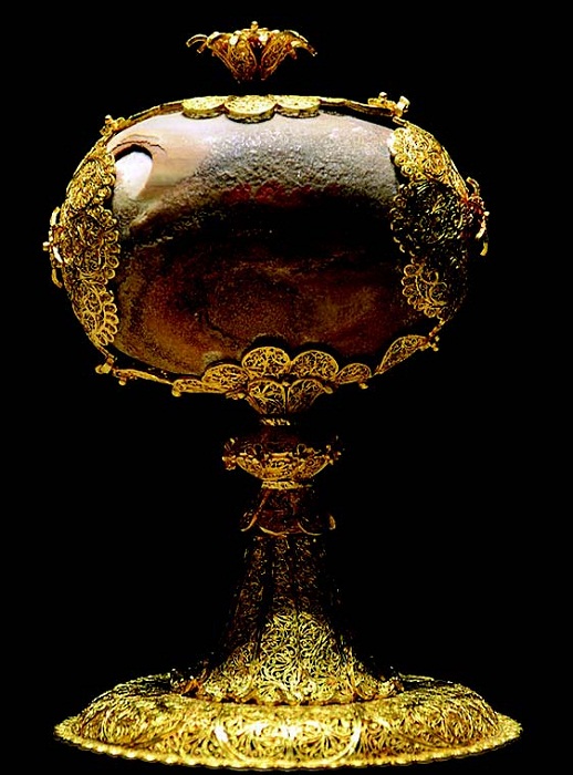 5. Pedra de bezoar numa montagem de filigrana de oro, 9, Goa, finais do século XVI, Kunsthistorisches Museum, Viena, <https://www.upload.wikimedia.org/wikipedia/commons/3/37/Bezoar_Kunsthistorisches_Museum_Vienne_09042013.jpg>.