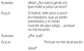 También responde con temor ante la amenaza de castigo Alejo, criado de Rugero en Lances de amor y fortuna. Alejo defiende a su amo y dice la verdad: al contrario de lo que piensa Aurora, no ha sido Lotario sino Rugero quien ha dejado a esta un cofre con joyas mientras dormía. La dama lo llama embustero y grita: «¡Vive Dios / que haga mataros a palos!», a lo que contesta el gracioso que eso no es posible porque, antes que se los den, morirá de miedo8. Más adelante, Aurora pide que golpeen a Alejo y este vuelve a responder con cobardía: