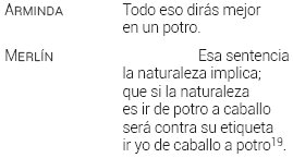 César no considera la broma del gracioso, a quien envía a prisión. Igualmente, nadie tiene en cuenta a Merlín, que reacciona de forma burlesca cuando es condenado al potro en Hado y divisa de Leonido y Marfisa17. El gracioso ha sido apresado en esta ocasión por llevar de la rienda al caballo del hombre buscado por Arminda. Cuando la dama le pregunta por la identidad de su amo, Merlín responde con una «locura». Cada vez más airada, Arminda termina por amenazarlo con la tortura del potro18, a lo que el gracioso se opone: