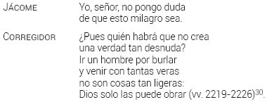 Y debe tenerse en cuenta que lo aparentemente súbito de esta conversión no lo utiliza Lope para cuestionarla o tacharla de superficial; antes al contrario, esta espontaneidad subraya su sinceridad, como pone de relieve el diálogo entre Jácome de Cárdenas y el corregidor, ya en la tercera jornada: