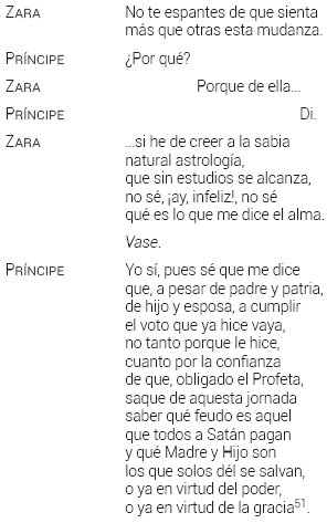 Debe destacarse también que, en la obra de Calderón, se cita una aleya coránica, aspecto extraordinario en el teatro de la época66. Es la siguiente: