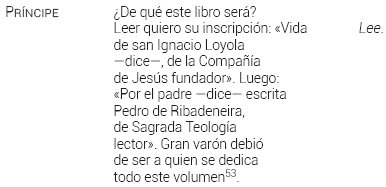 Lo interesante de esta escena es que, aunque el episodio sí está en la biografía escrita por Ribadeneira, según explicita Calderón55, en ella no ocupa más allá de unas cuantas líneas, de manera que todo el largo diálogo que mantienen Ignacio y el morisco, de varias decenas de versos, sobre los distintos misterios del cristianismo (no solo sobre la virginidad de María) es invención del dramaturgo, quien además lo hace encajar perfectamente con la versión de la aleya que propuso en la primera jornada.