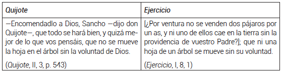 Hay un pasaje que erróneamente se ha atribuido a la Sagrada Escritura: «que no se mueve la hoja en el árbol sin la voluntad de Dios» y que en realidad se encuentra en capítulo 3 de la Segunda parte del Quijote. Pero también hay una mención en el Ejercicio.