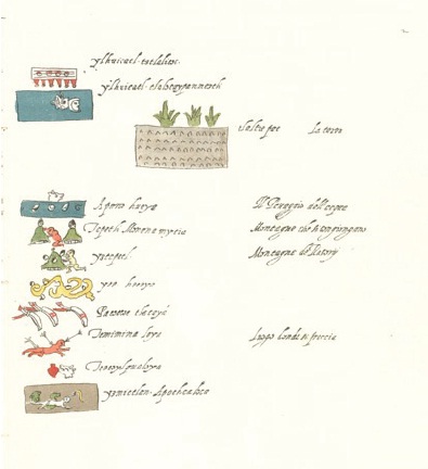 Si el Mictlan tiene una relación con la posición «abajo», como quiere destacar Olmos, en el pensamiento nahua sólo estaría dada por la idea de «volver a la tierra», como aparece en el lado Sur de la figura 2, o en el lado Norte para los aztecas. No es que Mictlan se encuentre exactamente en estructuras subterráneas, sino que es parte de un retorno a la tierra o tlaticpac. En la imagen observamos el árbol que nace de las fauces del monstruo de la tierra que devora a todos los mortales al final de sus vidas, pero que también hace nacer las plantas, sobre todo el maíz (a lo cual se debe que el dios que comparte este rumbo es Cinteotl, dios del maíz)37. Entonces, la inversión del eje norte-sur (horizontal) en relación con el eje arriba-abajo corresponde a una relocalización de Olmos quien, dentro del pensamiento cristiano, solo comprende una estructura vertical dentro de los destinos de los muertos (Cielo, Purgatorio e Infierno); y, por lo tanto, asimila Mictlan con Infierno en un eje vertical, bajo la tierra. Ahora bien, a pesar de que existe un documento como el Códice Vaticano A que muestra tal estructura vertical para el mundo de ultratumba mexica, en su análisis del códice Ana Díaz explica que la estructuración del inframundo en la segunda lámina del códice (figuras 3 y 4) corresponde no tanto a segmentos o escalafones inferiores del Mictlan, sino que el tlacuilo (escritor-pintor) intentó presentar en una secuencia narrativa las distintas pruebas que realizan los difuntos para llegar al Mictlan. De hecho, este lugar se entendería como el «cielo nocturno» (opuesto al Omeyoacan, cielo diurno), noción que no coincide con el emplazamiento de espacio superior e inferior38.