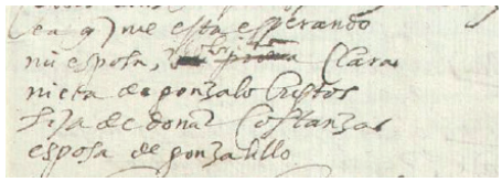 If we dig a bit deeper into the motivation for these changes, we shall see that this alteration follows the same pattern as other corrections found in the manuscript. We find the same type of correction on folios 13 recto and 15 recto in the third act and, once again, the references to the cousin were deleted and replaced with references to the niece.