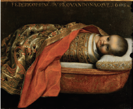 Añadía Young en sus argumentos, que a pesar de que el rostro del niño carecía de las señales de prognatismo características del último Habsburgo español, éstas no debieron empezar a desarrollarse hasta más tarde, ya que las gacetas informativas de la época lo describían como un recién nacido «hermosísimo de facciones, cabeza grande, pelo negro y algo abultado de carnes»67. Tal vez, tanto Mazo como la prensa española formaron parte del mismo mensaje intencionado con el que, tras el trágico óbito de Felipe Próspero, proporcionar sosiego y esperanza de continuidad dinástica frente a los sonados rumores de debilidad del nuevo heredero al trono68.