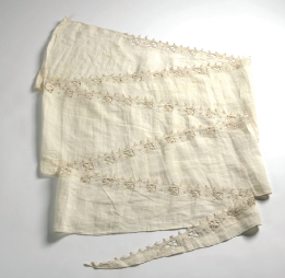 El mismo número de fajas de hilo blanco y seda de colores fueron encargadas a Velázquez de Tapia en mayo de 1609 para el nacimiento del infante Fernando. Cuatro blancas y ocho de colores, un año más tarde para la infanta Margarita, y otras tantas en septiembre de 1611 para al infante Alonso; estas últimas realizadas por la cordonera Isabel del Castillo35. Es evidente que, por su resistencia al lavado y durabilidad, las fajas de hilo tuvieron un uso ordinario, a diferencia de las de seda de colores que debieron ser tratadas con más miramiento, cumpliendo así una función más bien ornamental, disponiéndose sobre las primeras36 (fig. 11).