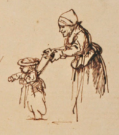 De la infanta María, hija de Felipe II y Ana Austria, sabemos que comenzó a caminar cumplido el año, cuando en marzo de 1581 la labrandera Petronila de Contreras hizo «dos bandas para traer a andar a Su Alteza»48 (fig. 14); y en la misma fecha, otras dos bandas de tafetán amarillo, a juego con un conjunto de jubón, ropilla y manteo realizado por el sastre Francisco de Herrera: