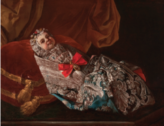 Abstract: The newborns of the House of Austria were swaddled with bands of cloth in order to avoid bone malformations. For the execution of this inmemorial practice, the royal seamstresses and lacemakers prepared the necessary clothing a few weeks before birth. The requirement to show the royal condition of newborn princes and princesses led to the inclusion of sumptuous ornaments and noble fabrics in their wardrobe, of which the baptism dress was the most opulent.