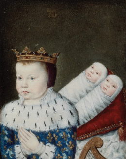 En el caso de Francia, dos escenas realizadas por George de La Tour prácticamente en la misma fecha, presentan ambos métodos (figs. 6-7), y así mismo ocurre en los retratos regios; sirva de ejemplo la miniatura de las hijas gemelas de Enrique II y Catalina de Médici (fig. 8), en contraste con las envolturas de Luis XIV (figs. 3-9). Por tanto, diferentes fuentes indican que ambos procedimientos de fajado coexistieron en Europa con independencia de la nacionalidad, data25 o rango social.