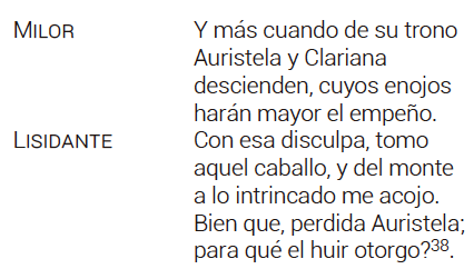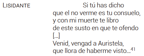 Un discurso claramente renacentista en el que evoca, como bien apunta García Aguilar reminiscencias garcilasianas presentes también, y de forma directa, a comienzos del capítulo octavo del tercer libro del Persiles. Razones, de cualquier manera, bien distantes de las que dirige Lisidante a Auristela en la comedia calderoniana: