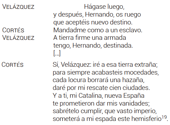 Pero para asegurarse el éxito de la obra, Patricio de la Escosura no solamente tuvo en cuenta el empleo de las fórmulas teatrales clásicas, sino que escogió un tema que tenía gran interés e importancia para los espectadores del siglo XIX: la conquista de América14.