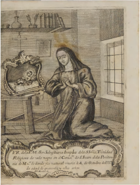 Sor Sebastiana Josefa de la Santísima Trinidad fue clarisa de San Juan de la Penitencia en México. En la «Dedicatoria» que abre el volumen se menciona un problema muy poco frecuente en las vidas, la falta de financiación: «cerradas las puertas de los poderosos y ricos con injustas repulsas, se fueron abriendo de par en par las puertas y las manos de los pobres»32, que ocasiona el retraso en la impresión.