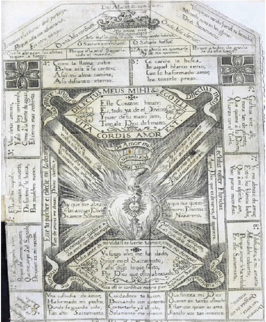 El corazón recibe y da un recado, que encuentra en el papel el vehículo de una mediación entre lo divino y lo humano: «Tanto regocijo le quedó en el alma con la sentencia de las palabras referidas, que después de haberlas asentado en el papel corrió la pluma escribiendo los siguientes afectos nacidos de la fervorosa gratitud con que le abrazaba el Amor Divino»23. Además, es el lugar de la clausula, del contrato legal, donde se rubrica un compromiso, una entrega indisoluble. Los papeles que se guardan en el pecho son siempre aquellos que han dado forma a un pacto que no puede ya romperse, más tarde volveremos sobre la importancia de la «mística del corazón»24.