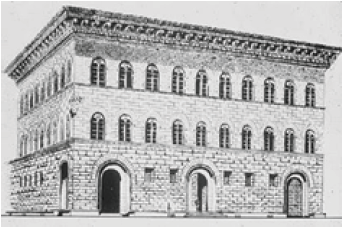 Entre estos edificios está la mansión principal del príncipe de Florencia, conocida hoy como el Palacio Médici-Riccardi (1444-1472; Fig. 6), una de las primeras estructuras palaciegas renacentistas a la que Michelozzo di Bartolomeo, el arquitecto de su reconstrucción, había incorporado elementos anteriormente solo utilizados en la arquitectura civil100. Mi interés en Terze rime, sin embargo, no se basa en sus características arquitecturales sino en algo que en poco tiempo será adoptado en España: la subordinación de la descripción a intereses propagandísticos. Cósimo estaba entonces en competencia con otros estados italianos y Terze Rime tiene como objetivo testimoniar su superioridad a través de lo que el poeta ha «oído» o «visto» de la opulencia del palacio101.