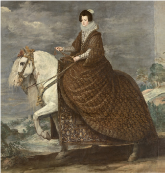 En efecto, no son pocos los testimonios que acreditan la adscripción del color rojo a la monarquía hispana, pero quizá, el más elocuente lo ofrece Cabrera de Córdoba al relatar la visita del barón de Vaucelas al Alcázar Real para formalizar la doble alianza matrimonial entre la infanta Ana con Luis XIII de Francia y su hermana Isabel con el príncipe Felipe IV. En la recepción, celebrada el 25 marzo de 1612, el príncipe Felipe y la infanta Ana vistieron trajes de color blanco, apuntando el cronista al respecto que el embajador español tendría que rendir la misma pleitesía en París a Luis XIII y a la princesa Isabel, «los cuales habían de estar vestidos de encarnado, trocándose los colores de entre ambas Coronas»127.
